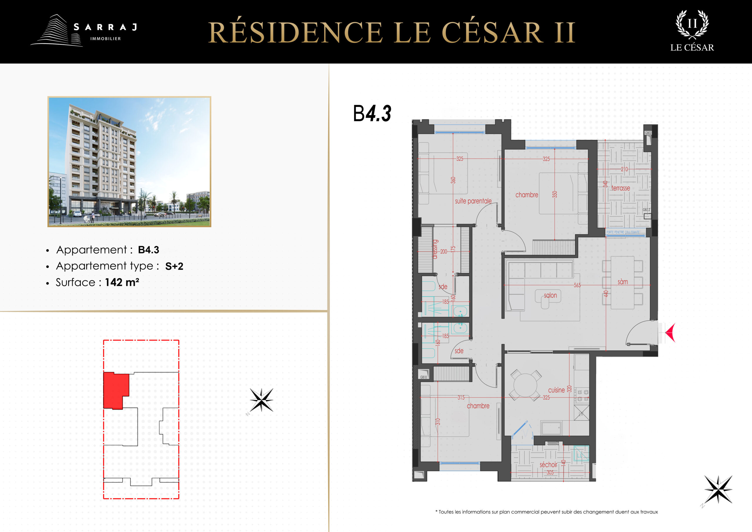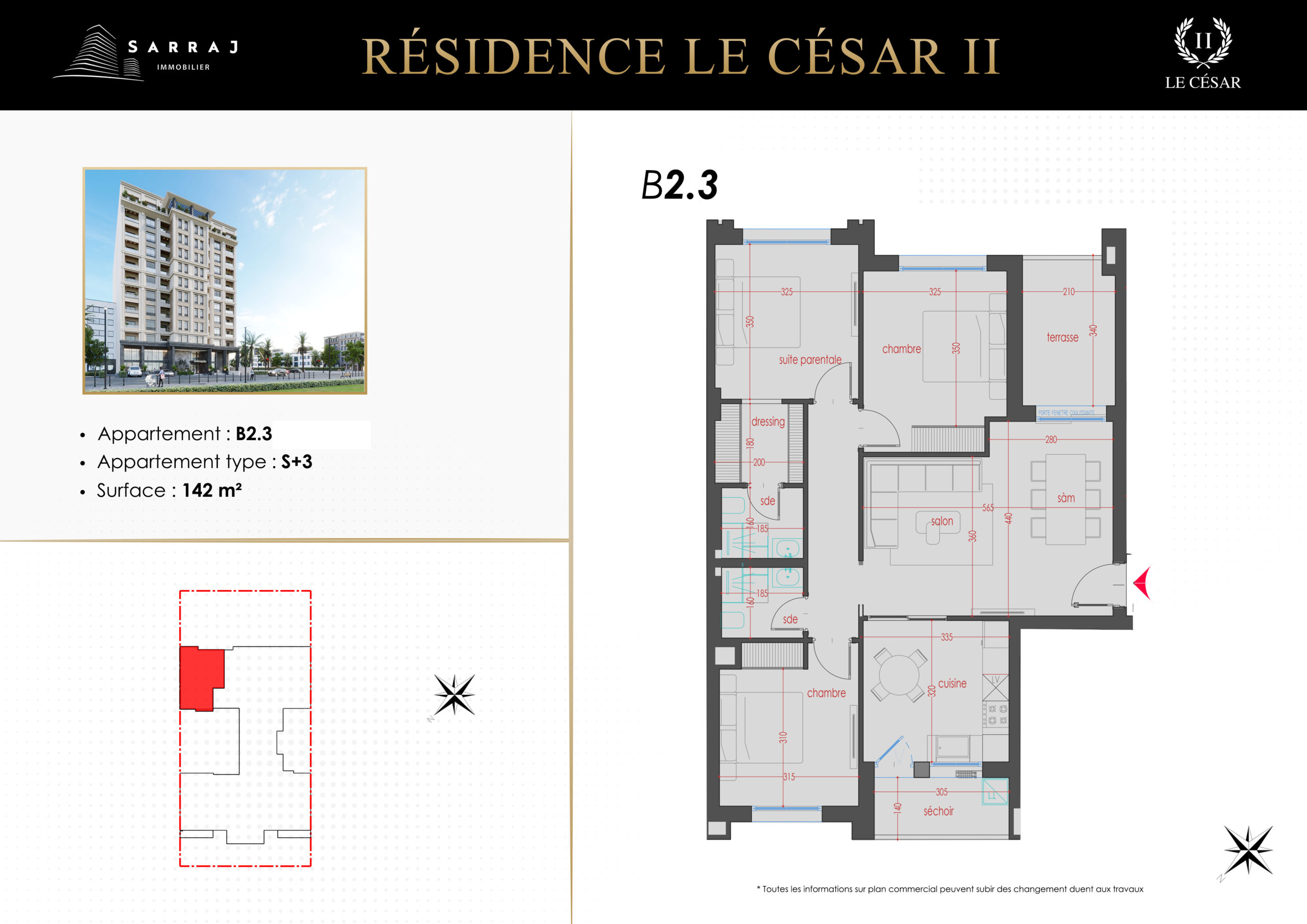 LE CESAR 2 | 2 | B2.3 | 142m² | – | Vue Sur Piscine | ||